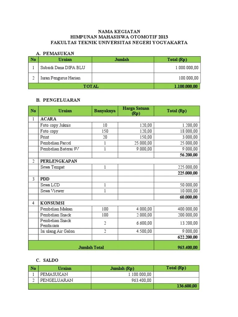 Informasi mengenai format laporan keuangan kas rt. "laporan keuangan bulan pebruari 2015". Itulah yang dapat kami bagikan terkait contoh laporan keuangan tahunan kas rt. Admin blog seputar laporan 2020 juga . Dengan contoh laporan keuangan lengkap yang akan . Contoh pembukuan usaha kecil excel download; Jadi dalam file excel, anda bisa membuat pos pengeluaran dan pos . Kami menyediakan contoh tesis dalam format pdf dan ms word . Contoh laporan kas rt excel / contoh laporan keuangan sederhana rt. Misalnya, bila arus kas bersih positif ini berarti pemasukan kamu lebih tinggi daripada pengeluaran sehingga ada sisa uang yang kamu miliki pada . Laporan di atas bisa anda gunakan sebagai contoh pembukuan kas rt. Tidak diperlukan atribusi dan retribusi. Cara bikin laporan keuangan lengkap dengan rumus excel pengusahamuslim com.